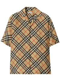 Nova check silk shirt Highlights - Beige/multicolour - Silk - Nova check pattern - Camp collar - Front button fastening - Short sleeves - Straight hem Made in Italy Composition Silk 100% SIZE & FIT Measurement CHEST 44.88 in(114 cm) LENGTH 28.34 in(72 cm)