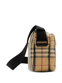 Paddy Vintage-check messenger bag Burberry's Vintage Check pattern first appeared in the ‘20s as a lining for its raincoats and has since evolved into one of the world’s most recognisable patterns. It acts as the sole branded element on this canvas Paddy bag, save for the logo-jacquard strap. Highlights - Archive beige - Vintage check pattern - Leather trim - Top zip fastening - Adjustable logo-jacquard shoulder strap - Front pouch pocket - Main compartment Imported Composition Lining: Polyamide 100% Outer: Polyamide 100%, Calf Leather 100% SIZE & FIT Measurement DEPTH 2.55 in(6.5 cm) HEIGHT 6.29 in(16 cm) STRAP 22.83 in(58 cm) WIDTH 8.85 in(22.5 cm)
