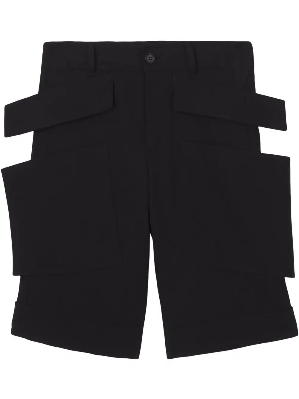 panel-detail wool shorts Putting a twist on a classic tailored silhouette, these wool shorts from Burberry boast symmetrical panelled detailing to each side. In a tonal black colourway, this construction nods to the house's creative approach. Highlights - Black - Wool - Panelled design - Belt loops - Front button and zip fastening - Two side slit pockets - Two rear welt pockets - Straight leg Made in Italy Composition Lining: Cupro 100% Outer: Wool 100% Buffalo Horn 100%