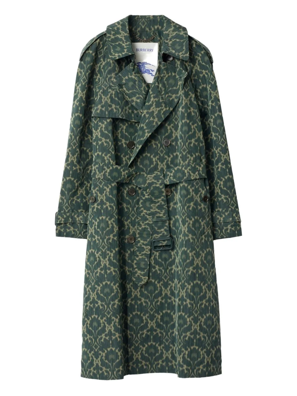 patterned belted trench coat Highlights - Green - Double-breasted button closure - Belt - Side pockets - Belted cuffs Imported Composition Viscose 54%, Polyester 46% Washing instructions Read Manufacturer Guidelines