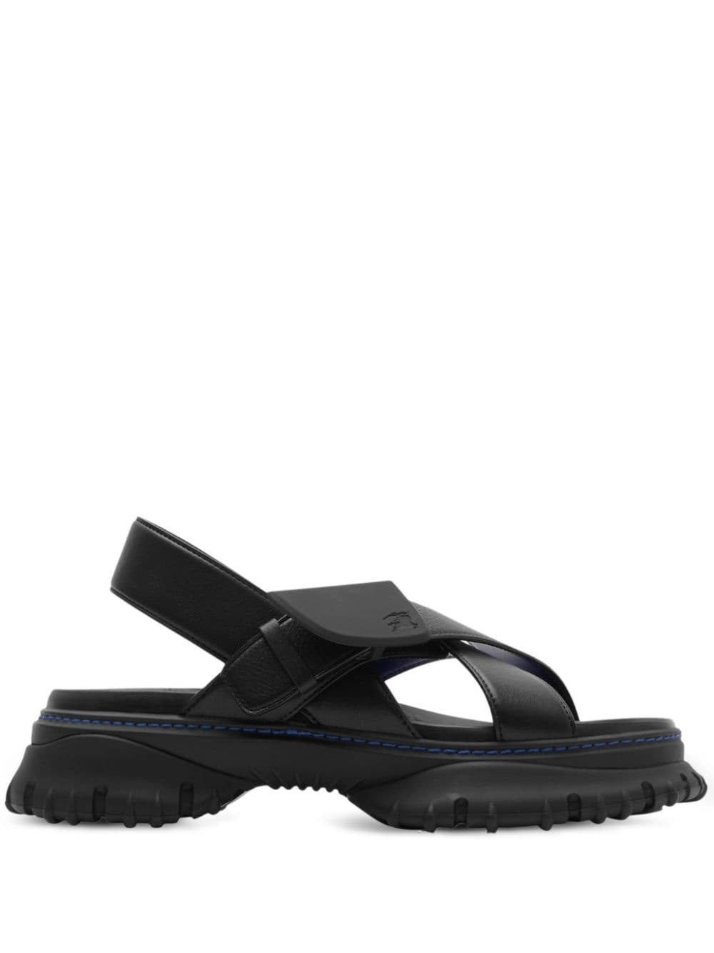 pebbled leather sandals Highlights - Black - Calf leather - Pebbled texture - Touch-strap fastening - Logo patch to the side - Signature equestrian knight motif - Crossover strap at the toe - Round open toe - Branded leather insole - Logo at the sole - Chunky sole Made in Italy Composition Sole: Polyurethane 100% Lining: Calf Leather 100% Outer: Polyamide 100%, Leather 100%