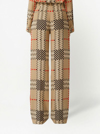 Pixel Check Silk Crepe de Chine Wide-leg Trousers