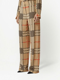 Pixel Check wide-leg trousers Highlights - Archive beige - Multicolour - Silk - Crepe de chine - Check pattern - High waist - Wide leg - Concealed front fastening - Two side slash pockets - Two rear jetted pockets Made in Italy Composition Lining: Silk 100% Outer: Silk 100% SIZE & FIT Measurement FRONT RISE 10.98 in(27.9 cm) INSIDE LEG 30 in(76.2 cm) BACK RISE 13.5 in(34.3 cm) HIPS 34.01 in(86.4 cm) Hem Width 22 in(55.9 cm) WAIST 27.99 in(71.1 cm)