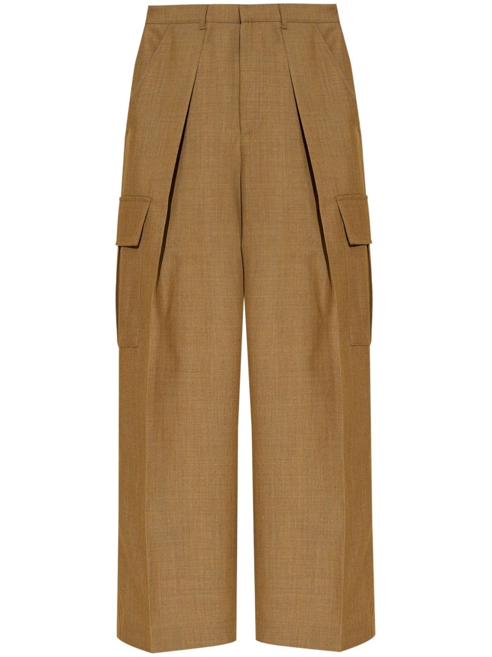 pleat-detail wool cargo trousers Highlights - Sand beige - Wool - Melange effect - Pleat detailing - High-waisted - Concealed fly and button fastening - Belt loops - Wide leg - Two side slit pockets - Two side cargo pockets - Two rear welt pockets Imported Composition Outer: Wool 100%, Buffalo Horn 100% Lining: Cotton 100%