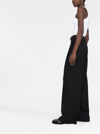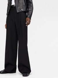 pleated wide-leg wool trousers Tailored from Italian-woven wool, these Burberry trousers showcase the British house's commitment to impeccably crafted timeless pieces. The pair sits high at the waist to fall to a flattering wide-leg, which is accented by elegant pleating. Highlights - Black - Wool - High-waisted - Belt loops - Hook and zip fly fastening - Pleat detailing - Wide leg - Two side inset pockets - Two rear welt pockets Made in Italy Composition Wool 100% SIZE & FIT Model measurements Height 5 ft 11 in(1.8 m) Bust/Chest 32.67 in(83 cm) Hips 36.22 in(92 cm) Waist 24.4 in(62 cm) Measurement INSIDE LEG 33.46 in(85 cm) HIPS 37.79 in(96 cm) WAIST 25.98 in(66 cm) FittingInformation This piece fits true to size. We recommend you get your regular size Designed to be fitted at the waist and hips, loose over the leg Made with a mid-weight non-stretch fabric Washing instructions Dry Clean Only