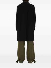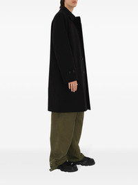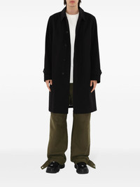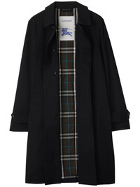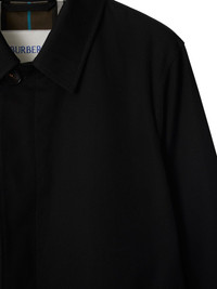 pointed-collar gabardine coat Highlights - Black - Cotton - Gabardine weave - Water-resistant - Straight-point collar - Long sleeves with belted cuffs - Two side welt pockets - Central rear vent - Vintage check-pattern lining - Straight hem - Front button fastening Made in United Kingdom Composition Lining: Cotton 100% Outer: Cotton 100%