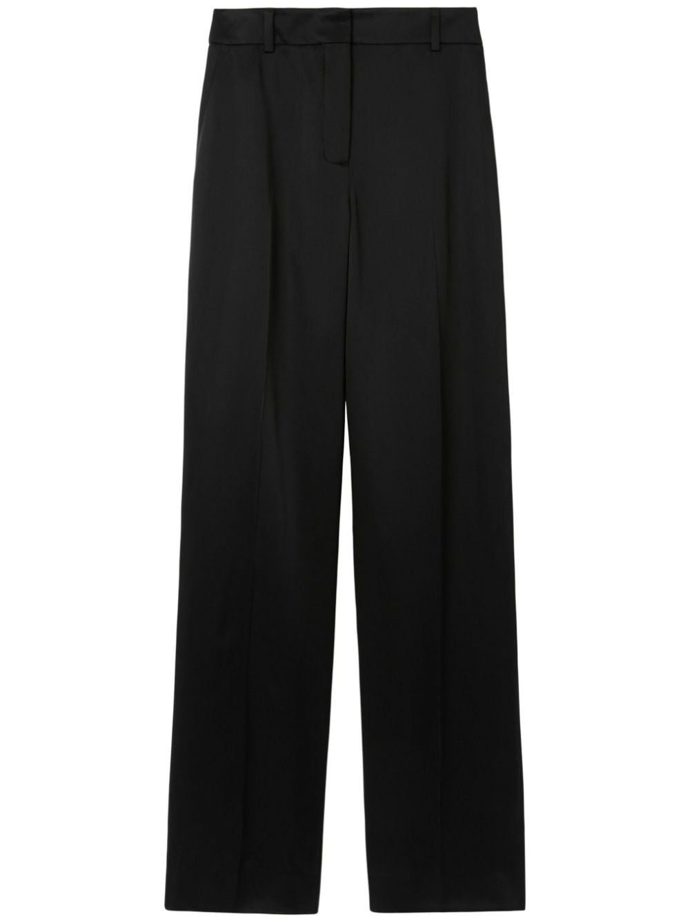 pressed-crease flared trousers Highlights - Black - Satin finish - Pressed crease - Belt loops - Concealed front fastening - Flared - Long length Made in Italy Composition Acetate 60%, Viscose 40%