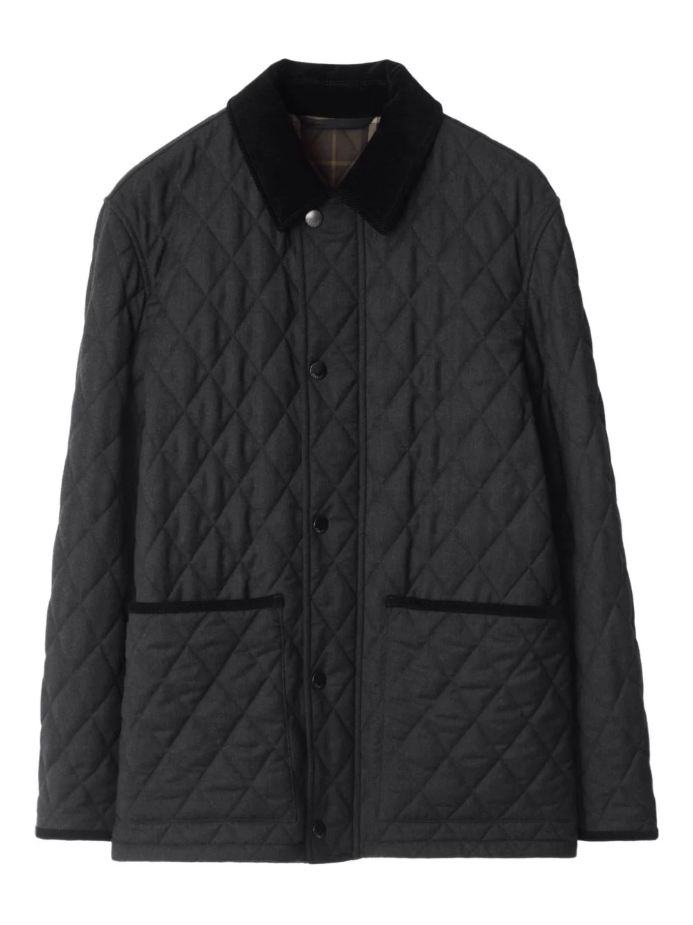 quilted corduroy-collar jacket Highlights - Charcoal grey - Diamond quilting - Corduroy collar - Two-way zip fastening - Press-stud closure - Patch pockets Imported Composition Outer: Nylon 100% Lining: Fabric 100% Washing instructions Read Manufacturer Guidelines