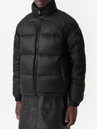 quilted zip-up jacket Highlights - Black - Goose down - Padded design - Quilted finish - Funnel neck - Front zip fastening - Long sleeves - Elasticated cuffs - Straight hem Made in Italy Composition Filling: Goose Down 90%, Feather 10% Outer: Polyamide 100% Lining: Polyester 100% SIZE & FIT Measurement CHEST 52.75 in(134 cm) SLEEVE LENGTH 26.77 in(68 cm)