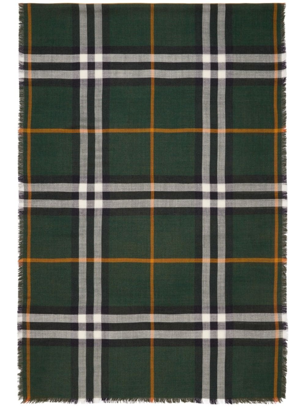 raw-cut checked scarf Highlights - Forest green - Wool-silk blend - House check pattern - Raw-cut edge - Logo tag - Long length Made in Italy Composition Wool 51%, Silk 49% SIZE & FIT Measurement LENGTH 86.61 in(220 cm) WIDTH 27.55 in(70 cm) Washing instructions Dry Clean Only