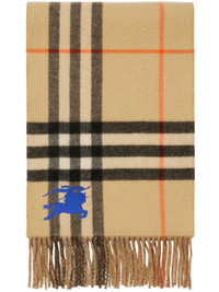 reversible check cashmere scarf Highlights - Sand beige - Cashmere - Reversible - Check pattern - Fringe detailing - Rectangle shape - Pull-on style - Signature equestrian knight motif Made in United Kingdom Composition Cashmere 100% SIZE & FIT Measurement LENGTH 66.14 in(168 cm) WIDTH 11.81 in(30 cm)