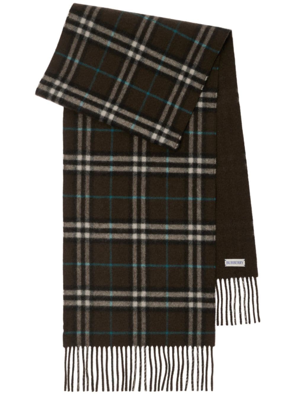 Reversible Check Cashmere Scarf Highlights - Cedar brown/multicolour - Cashmere - Brushed effect - Reversible - Plaid check pattern - Logo patch to the rear - Fringed edge Made in United Kingdom Composition Cashmere 100% SIZE & FIT Measurement LENGTH 66.14 in(168 cm) WIDTH 11.81 in(30 cm)