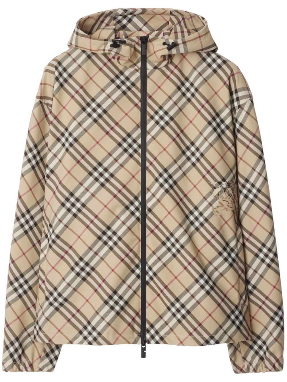 reversible check jacket Highlights - Archive beige - Front two-way zip fastening - Drawstring hood - Two side zip-fastening pockets - Signature equestrian knight motif Imported Composition Lining: Polyamide 100%, Polyester 100% Outer: Polyester 100%