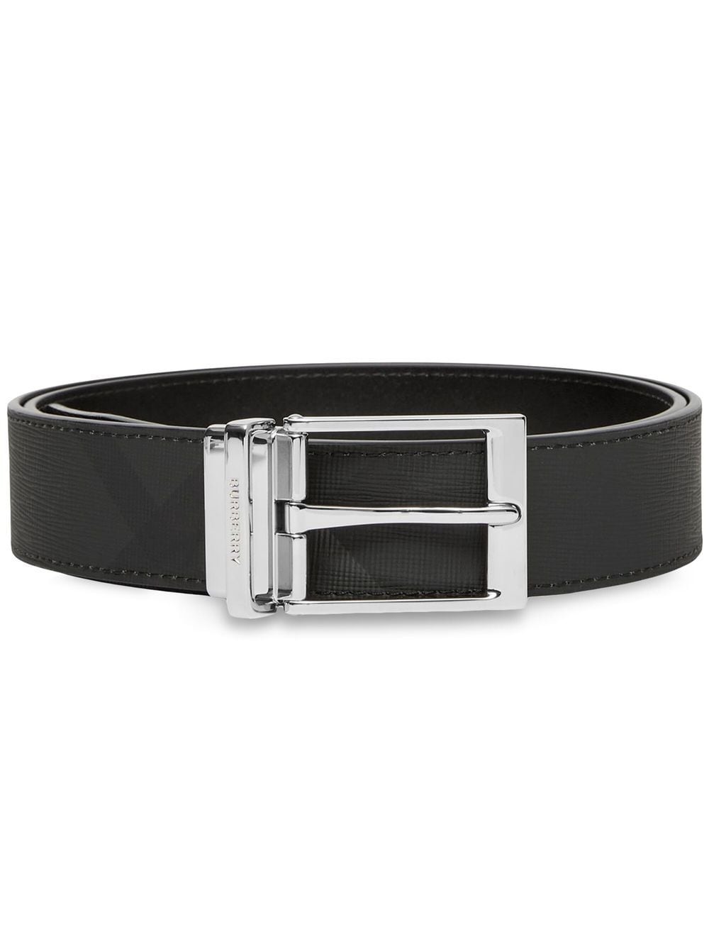 reversible check leather belt Highlights - Charcoal grey - Leather - Check pattern - Silver-tone buckle fastening - Engraved logo - Punched holes - Adjustable fit - Reversible Made in Italy Composition Leather 100%