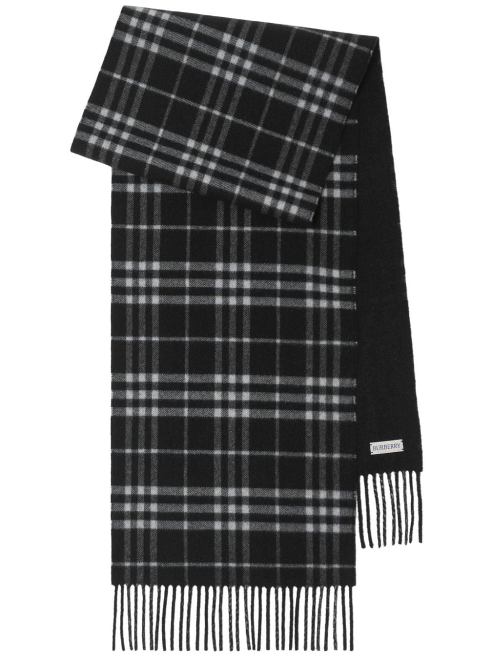 reversible check scarf Highlights - Black/grey - Cashmere - Check pattern - Reversible - Applique logo - Fringed edge Made in United Kingdom Composition Cashmere 100% SIZE & FIT Measurement LENGTH 66.14 in(168 cm) WIDTH 11.81 in(30 cm)