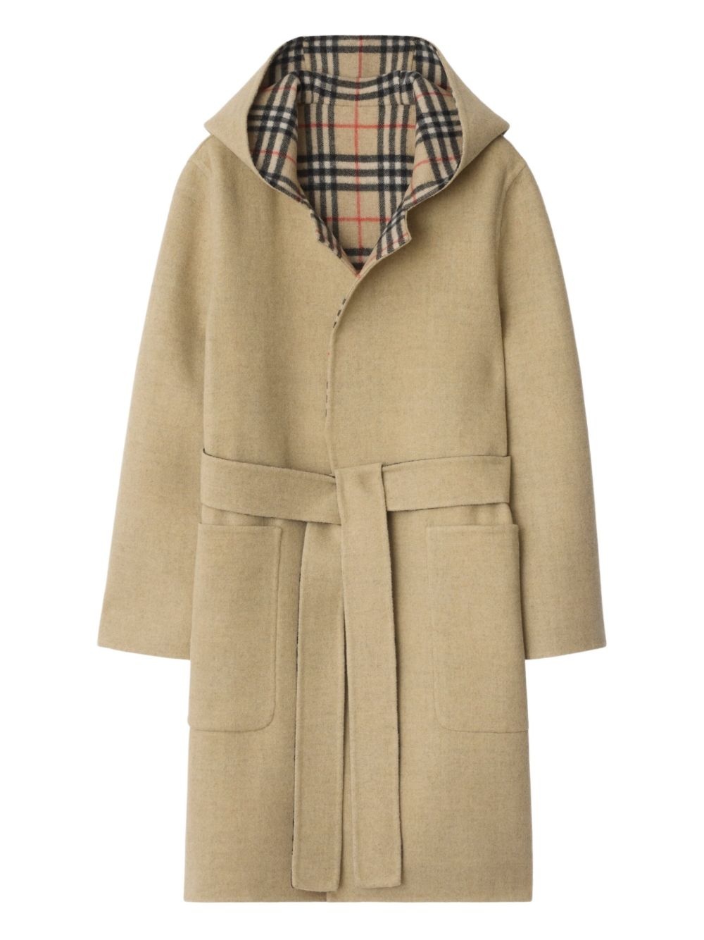 reversible coat Highlights - Sand beige - Self-tie fastening - Detachable and adjustable waist belt - Two side patch pockets - Vintage check pattern Made in Italy Composition Wool 100%