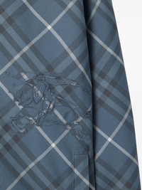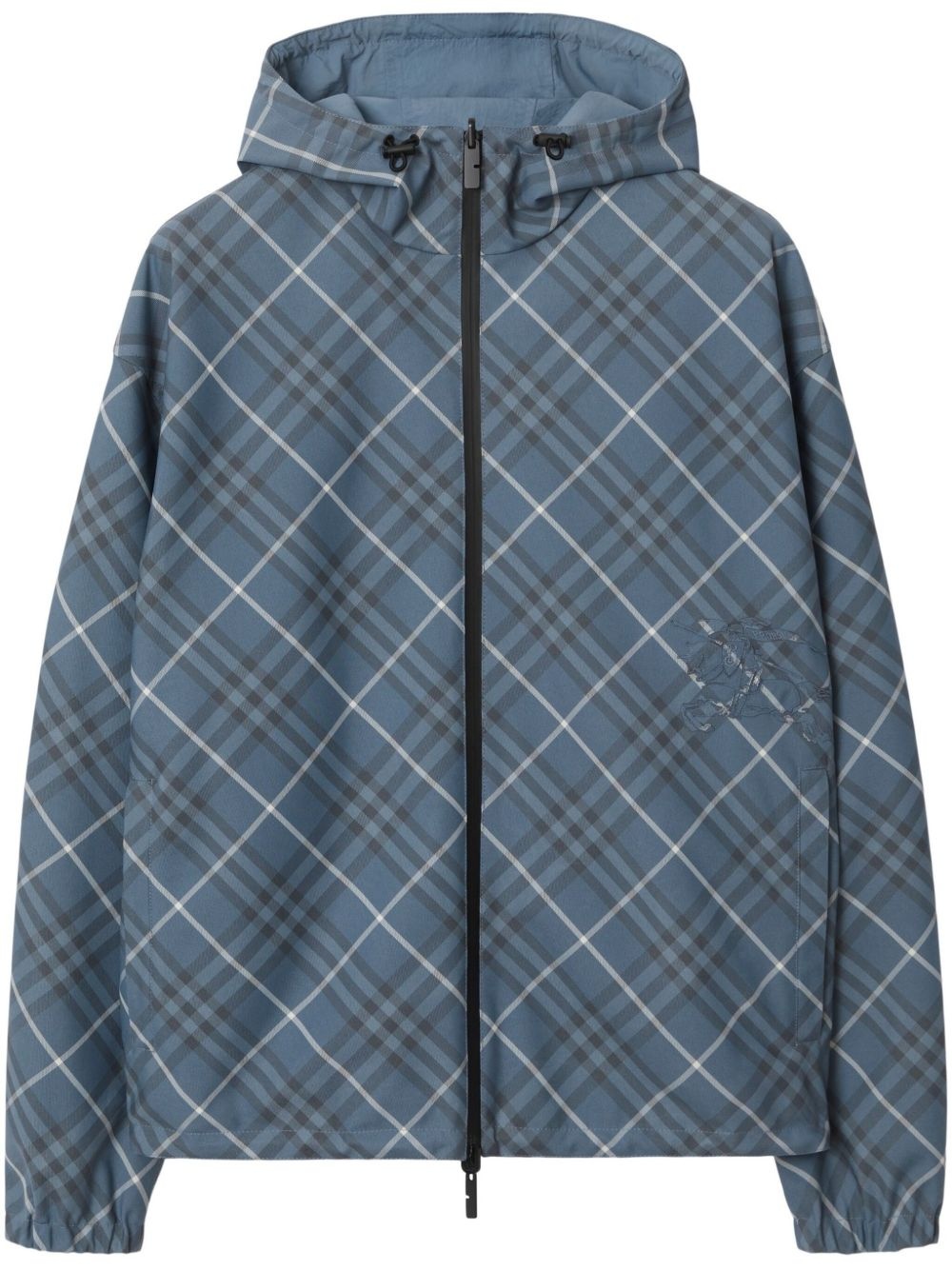 Oversized Reversible Logo-Appliquéd Checked Gabardine and Nylon Hooded Jacket Navy