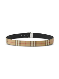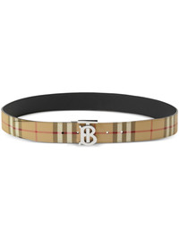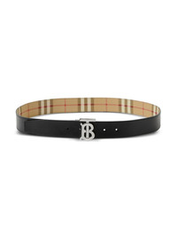 Vintage Check reversible belt Highlights - Black/multicolour - Leather - Vintage check pattern - Signature tb monogram plaque - Reversible - Punched holes - Adjustable fit Made in Italy Composition Leather 100%, Polyurethane 71%, Polyester 16%, Cotton 12%, Acrylic 1% SIZE & FIT Measurement Maximum Length 41.33 in(105 cm) Minimum Length 37.4 in(95 cm) WIDTH 1.37 in(3.5 cm)