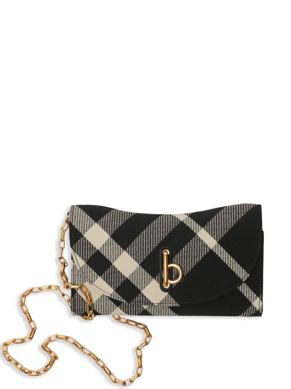 Rocking Horse chain wallet Highlights - Black/white - Canvas - Check pattern - Foldover top - Clasp fastening - Detachable chain-link shoulder strap - Logo plaque - Internal card slots - Internal slip pocket - Leather lining Made in Italy Composition Outer: Polyester 65%, Cotton 35% Lining: Lambskin 100%, Cotton 53%, Polyurethane 47%