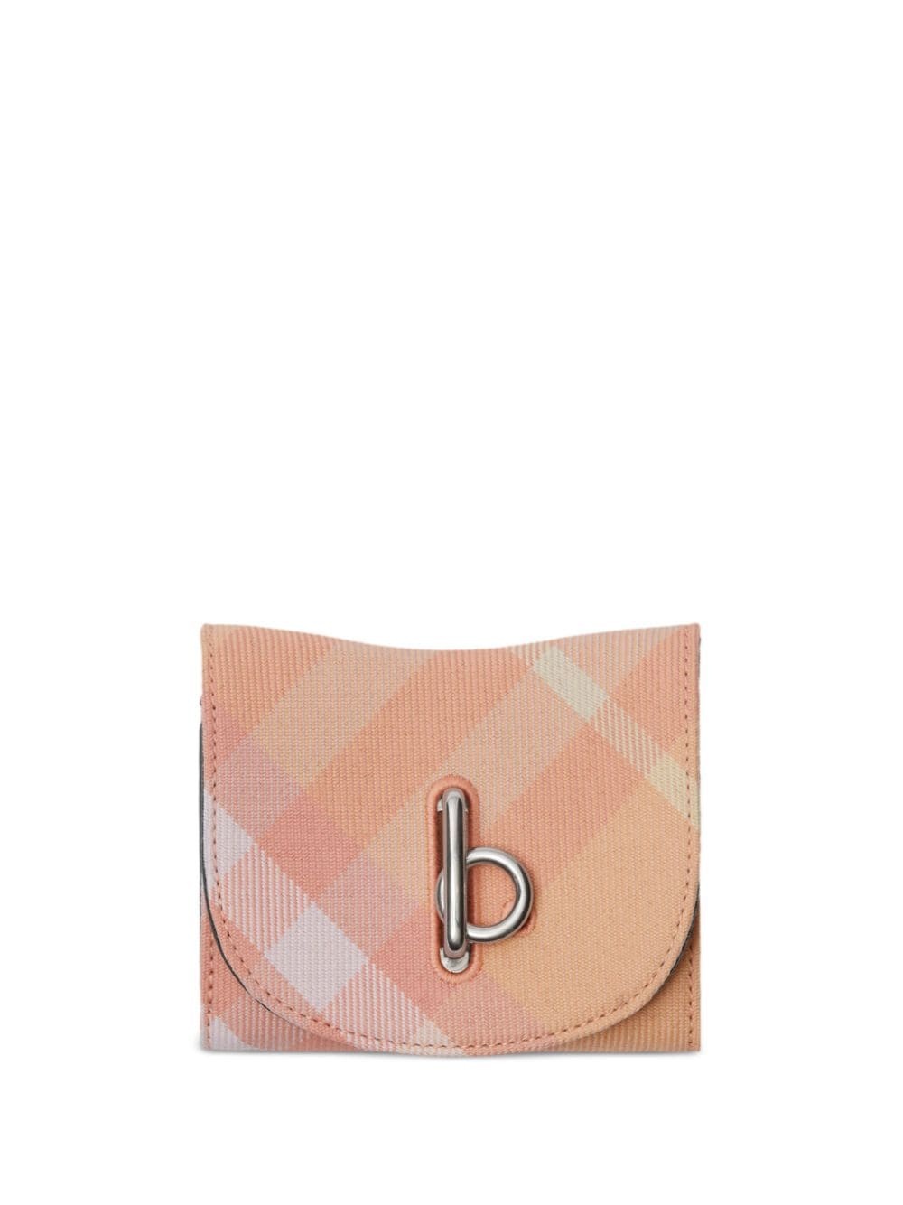 Rocking Horse wallet Highlights - Peach pink - Cotton blend - Leather - Check print - Foldover top - Turn-clasp fastening - Internal logo stamp - Internal card slots - Zip-fastening pocket Made in Italy Composition Lining: Cotton 78%, Polyurethane 22% Outer: Lamb Skin 100%, Polyester 66%, Wool 34% SIZE & FIT Measurement DEPTH 1.18 in(3 cm) LENGTH 4.52 in(11.5 cm) WIDTH 4.13 in(10.5 cm)