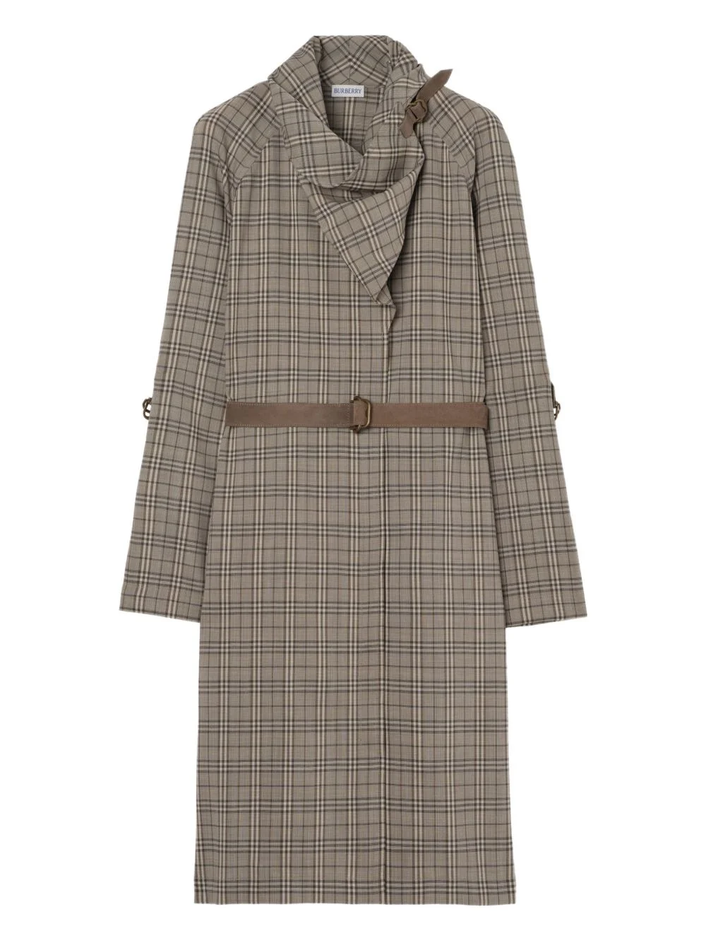 scarf-collar checked mini dress Highlights - Grey - Check pattern - Buckle belt - Adjustable sleeve straps Imported Composition Wool 97%, Lycra 3% Washing instructions Specialist Cleaning