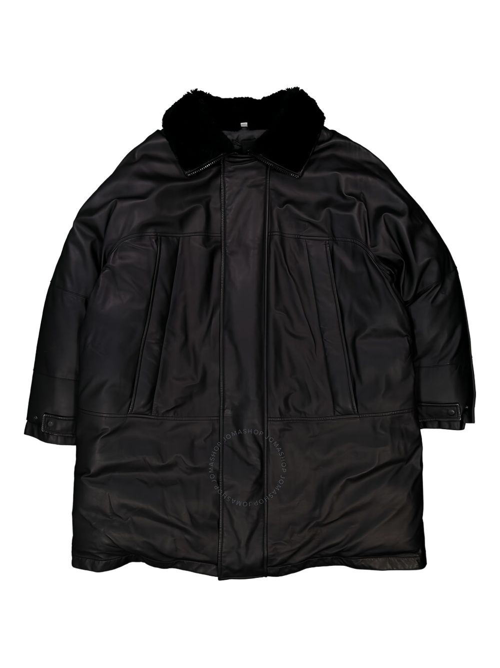 shearling-collar leather coat Highlights - Black - Leather construction - Shearling collar - Concealed zip fastening - Buttoned cuffs Imported Composition Lambskin 100% Washing instructions Read Manufacturer Guidelines