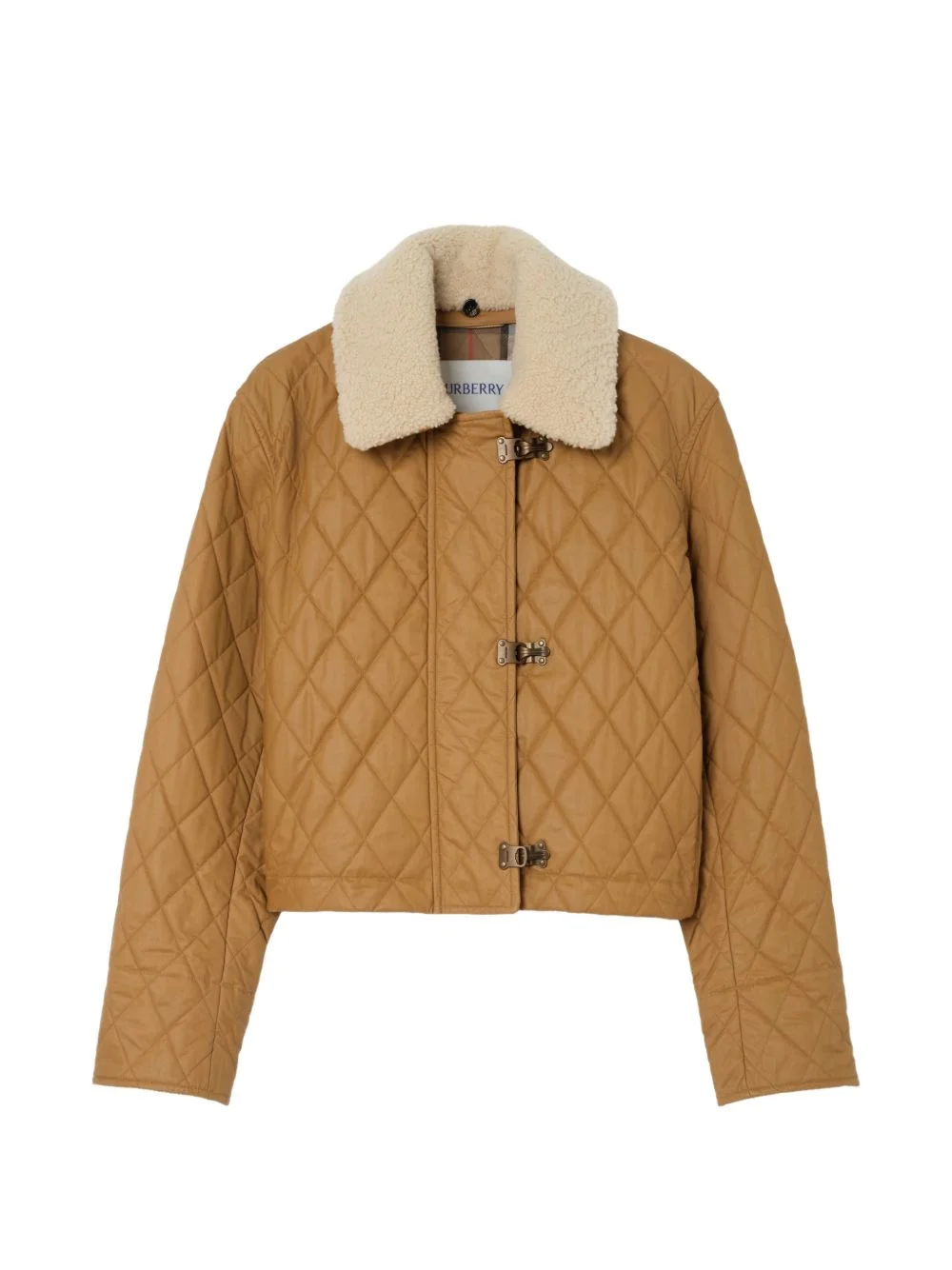 shearling-collar quilted jacket Highlights - Sepia - Quilted - Detachable shearling collar - Throat latch - Press-stud cuffs Imported Composition Outer: Cotton 100%, Lamb Shearling 100%, Buffalo Horn 100% Lining: Cotton 100%, Polyester 100% Washing instructions Specialist Cleaning