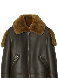 shearling leather aviator jacket Highlights - Brown - Calf leather - Shearling - Throat latch - Front two-way zip fastening - Two side zip-fastening pockets - Long sleeves - Cuff zips - Logo-buckle detail - Straight hem Made in Italy Composition Sheep Skin/Shearling 100%, Calf Leather 100% SIZE & FIT Measurement SLEEVE LENGTH 23.5 in(59.7 cm) LENGTH 24.01 in(61 cm) WAIST 42 in(106.7 cm) BUST 37.99 in(96.5 cm) Washing instructions Specialist Cleaning