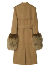 shearling-trimmed trench coat Highlights - Camel brown - Cotton blend - Front button and zip fastening - Spread collar - Throat latch - Epaulettes - Storm flap - Long sleeves - Shearling trim - Detachable waist belt - Two side welt pockets - Central rear vent - Vintage check-pattern lining - Straight hem Made in Italy Composition Cotton 100%, Nylon 100%