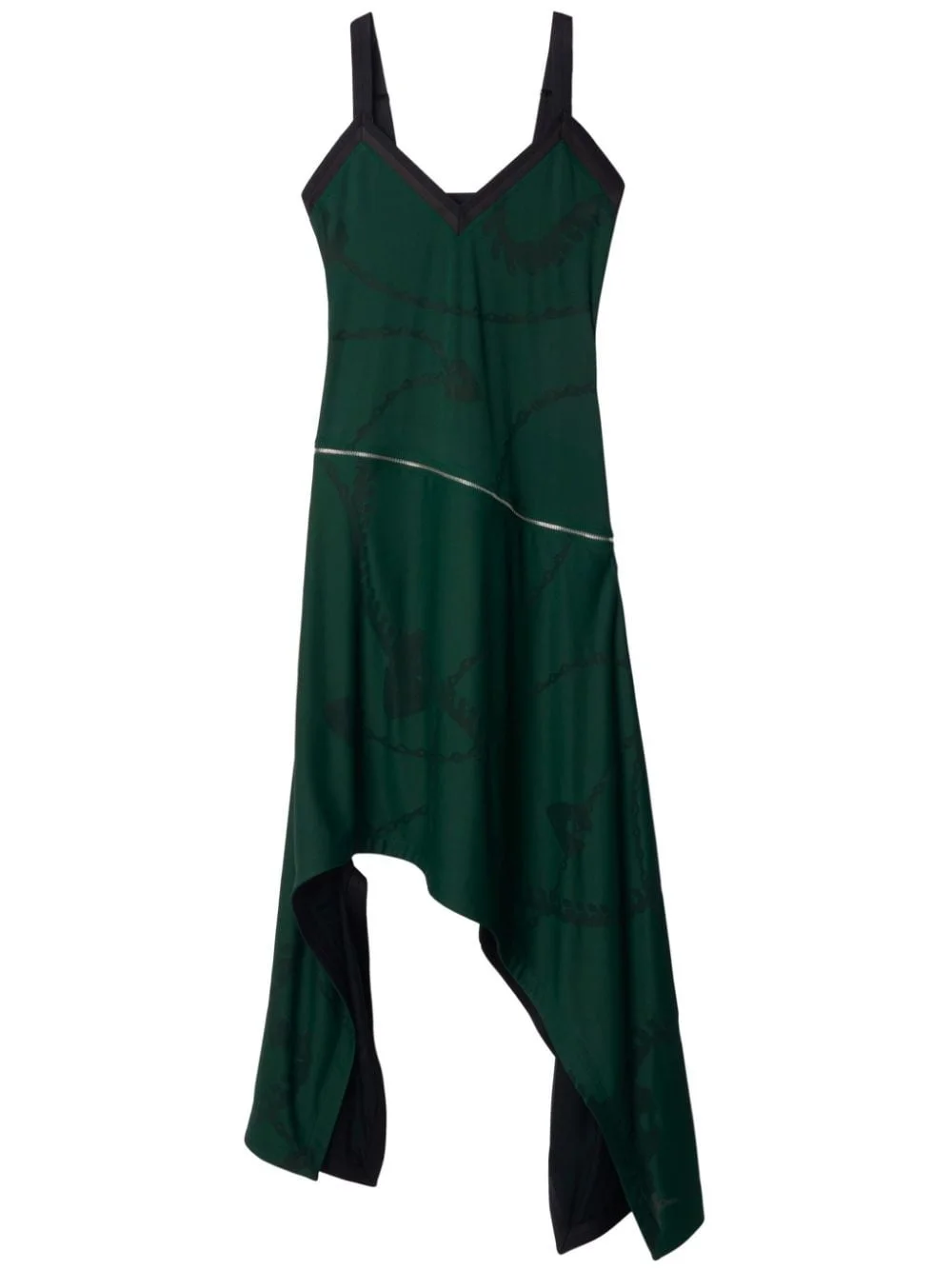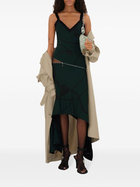 Shield Hardware asymmetric midi dress Highlights - Ivy green - Stretch-design - Crepe texture - Asymmetric design - Abstract pattern print - Zip detail - Cut-out detailing - V-neck - Adjustable shoulder straps - Sleeveless - Mid-length - Asymmetric hem Made in Italy Composition Lining: Viscose 100% Outer: Viscose 80%, Polyamide 17%, Elastane 3%