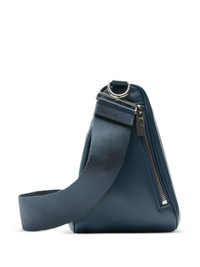 Shield leather shoulder bag Highlights - Blue - Calf leather - Rear zip-fastening pocket - Side zip-fastening pocket - Top zip fastening - Main compartment - Adjustable shoulder strap Made in Italy Composition Outer: Calf Leather 100% Lining: CALFSKIN 100%