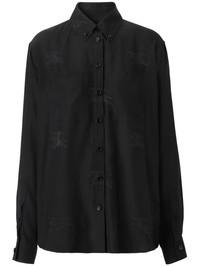 silk EKD pattern shirt A nod to the brand's equestrian-inspired roots and short for Equestrian Knight Design, Burberry's EKD pattern has become one of the house's most recognisable motifs. Here, it punctuates a black buttoned shirt crafted from delicate silk. Made In Italy Composition Silk 100%