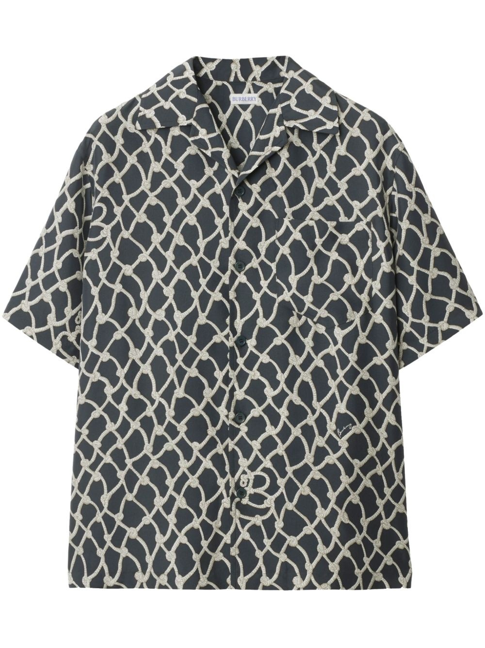 silk shirt Highlights - Dark green - Front button fastening - Chest patch pocket - Spread collar - Short sleeves Made in Italy Composition Silk 100%, Mother of Pearl 100%
