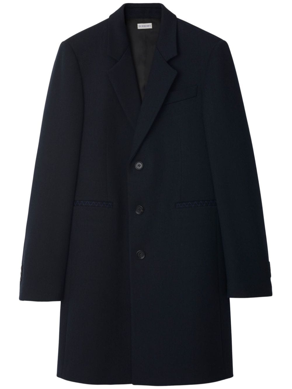 single-breasted wool coat Highlights - Navy blue - Wool - Notched lapels - Front button fastening - Long sleeves - Two side welt pockets - Straight hem - Central rear vent Made in Italy Composition Lining: Viscose 100% Outer: Buffalo Horn 100%, Wool 100%