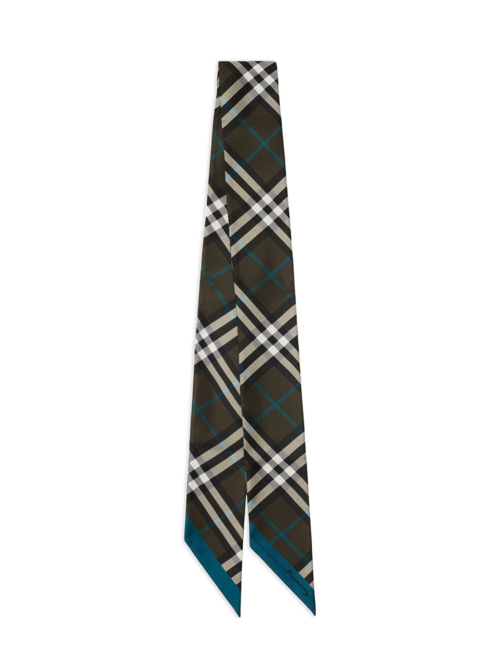 skinny checked scarf Highlights - Taupe brown - Wraparound style - Check pattern - Logo lettering - Angled tip Made in Italy Composition Silk 100% SIZE & FIT Measurement LENGTH 70.86 in(180 cm) WIDTH 3.14 in(8 cm) Washing instructions Specialist Cleaning