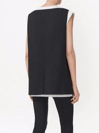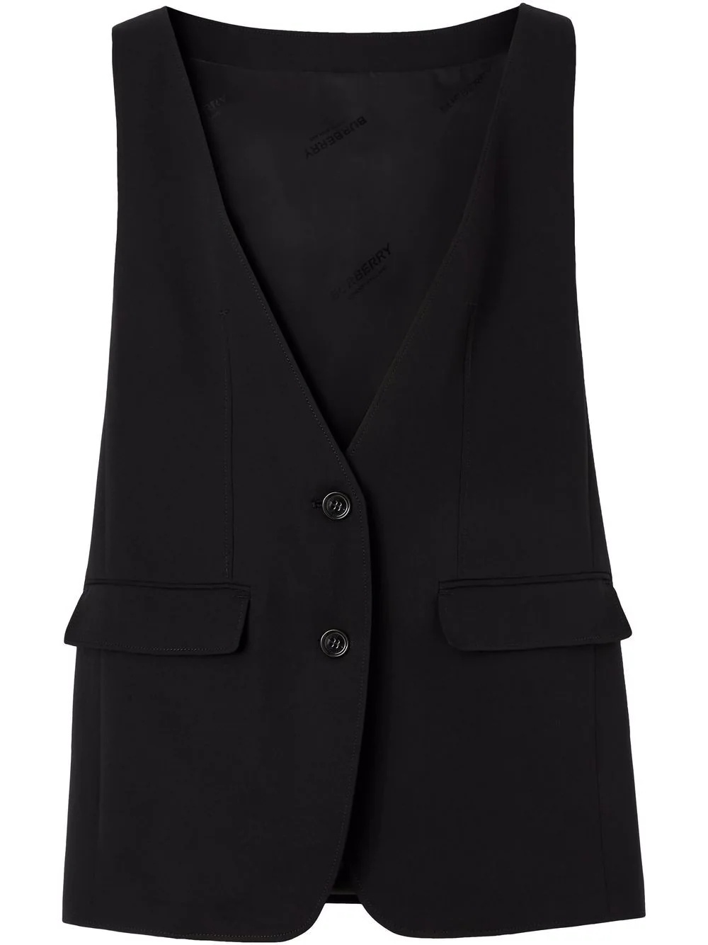sleeveless tailored silk jacket Produced in a tonal silk fabrication, Burberry's classic style is showcased with this sleeveless tailored jacket. Crafted in a boxy construction, the elegant design features a single-breasted button closure for a minimal completion. Made in Italy Composition Silk 100%