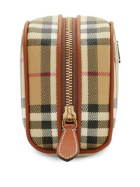 small Check travel pouch Highlights - Archive beige - All-around zip fastening - Main compartment - Applique logo - Piped-trim detailing Imported Composition Outer: Calf Leather 100%, Polyurethane 55%, Polyester 25%, Cotton 20% Lining: Cotton 71%, Polyamide 29% SIZE & FIT Measurement DEPTH 2.95 in(7.5 cm) HEIGHT 4.52 in(11.5 cm) WIDTH 7.48 in(19 cm)