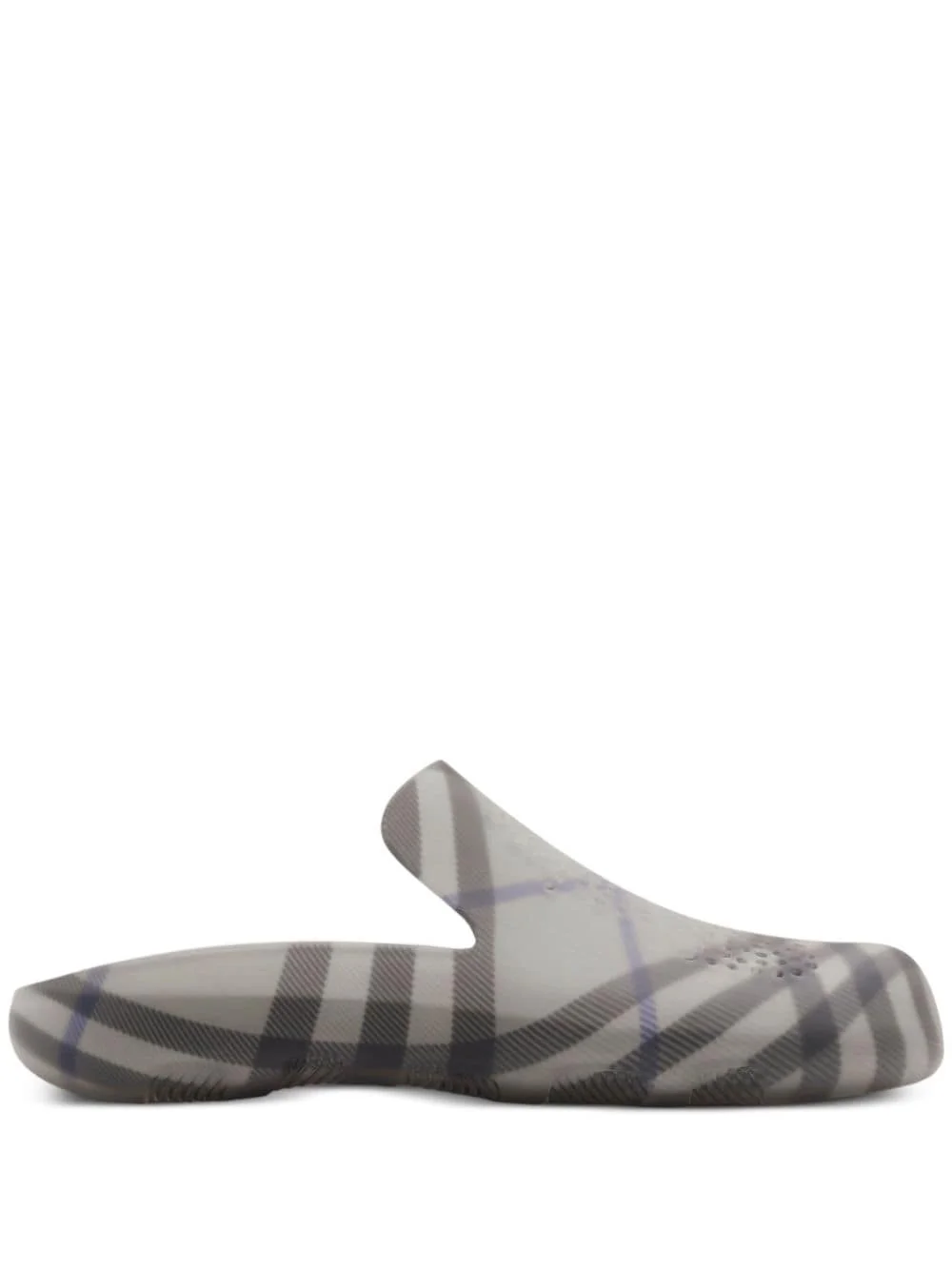 Stingray checked-lining slippers Highlights - Light grey/medium grey/royal blue - Transparent design - Signature equestrian knight motif - Round toe - Slip-on style - Checked lining - Branded insole - Flat rubber sole Made in Italy Composition Outer: Rubber 100% Lining: Polyethylene vinyl acetate (PEVA) 60%, Rubber 40% Sole: Rubber 100%