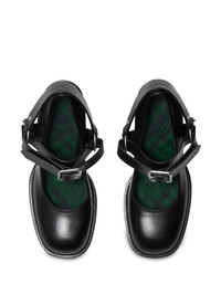 Stirrup 85mm leather pumps Highlights - Black - Calf leather - Signature equestrian knight motif - Buckle-strap fastening - Round toe - Cushioned insole - High stacked heel Made in Italy Composition Lining: Calf Leather 75%, Cotton 15%, Polyester 6%, Polyurethane 4% Outer: Calf Leather 100% Sole: Calf Leather 90%, Thermoplastic Polyurethane (TPU) 6%, Recycled ABS 4% SIZE & FIT Measurement HEEL 3.34 in(8.5 cm)