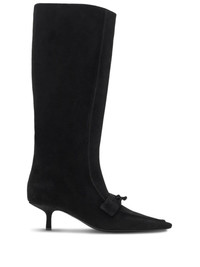 Storm 50mm suede boots London-based Burberry injects its timeless aesthetic in these knee-high suede Storm boots. Sitting atop a refined kitten heel, they come in a classic squared-toe silhouette and monochromatic black colourway. Highlights - Black - Suede - Penny slot - Lace-up detailing - Signature equestrian knight motif at the sole - Square toe - Branded leather insole - 50mm kitten heel - Knee-high - Slip-on style Made in Italy Composition Suede 100% SIZE & FIT Measurement HEEL 1.96 in(5 cm)