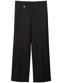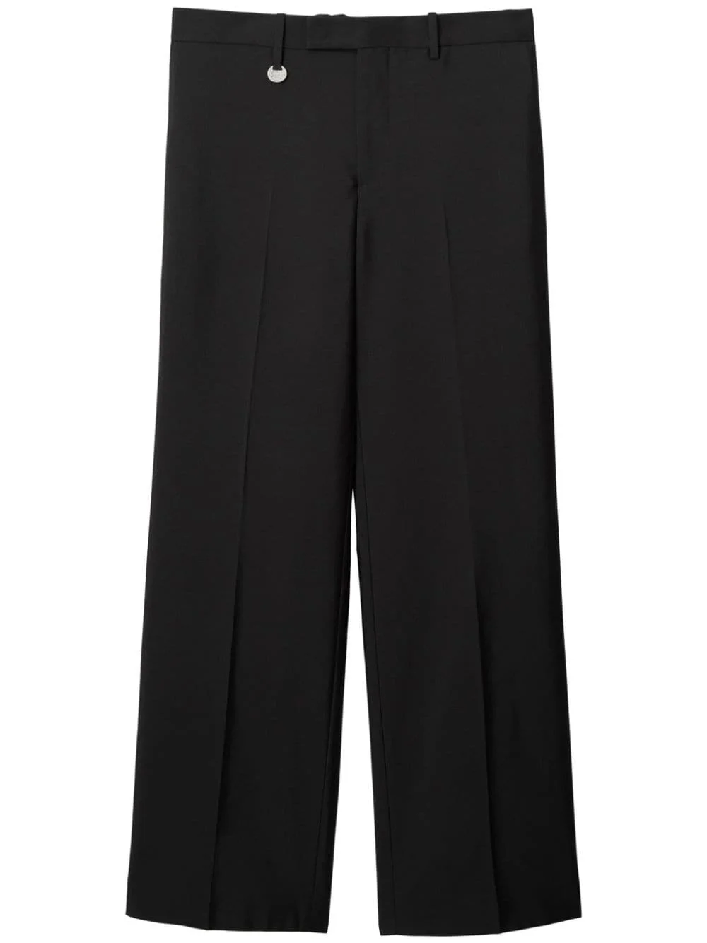 straight-leg wool-blend trousers Highlights - Black - Wool blend - Logo charm - Mid-rise - Belt loops - Concealed front fastening - Pressed crease - Straight leg Made in Italy Composition Outer: Wool 60%, Silk 40% Lining: Viscose 100%