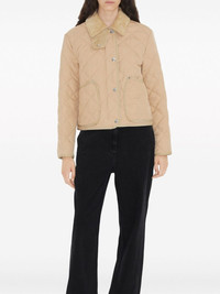 straight-point collar quilted jacket Highlights - Sand beige - Cotton - Quilted - Straight-point collar - Front press-stud fastening - Two front patch pockets - Long sleeves - Straight hem Imported Composition Outer: Polyester 100% Lining: Cotton 100% Washing instructions Dry Clean Only