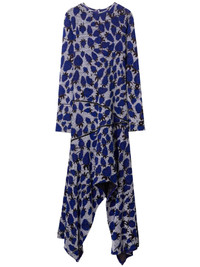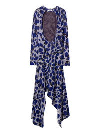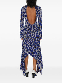 strawberry jacquard dress Highlights - Navy blue - Light grey - Cotton-silk blend - Patterned jacquard - Flared - Crew neck - Concealed rear fastening - Long sleeves - Open back - Asymmetric hem Made in Italy Composition Cotton 90%, Silk 10%