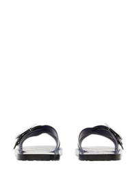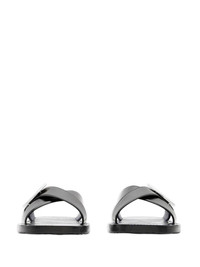 Strip Shield leather slides Highlights - Black - Calf leather - Silver-tone logo plaque - Signature equestrian knight motif - Crossover strap at the toe - Round open toe - Slip-on style - Flat sole Made in Italy Composition Outer: Calf Leather 100% Lining: Calf Leather 100% Sole: Polyurethane 100%