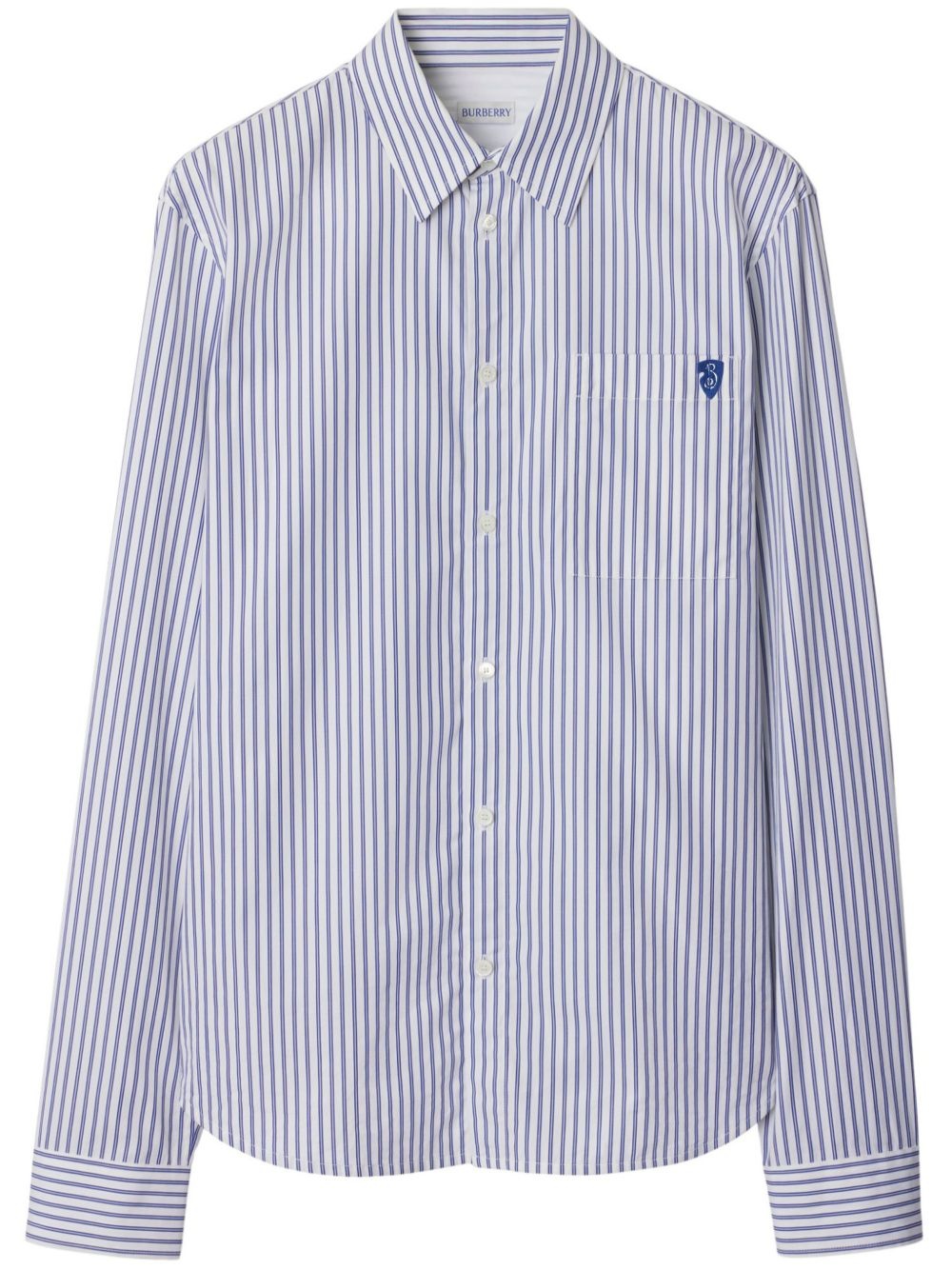 striped cotton shirt Highlights - White - Front button fastening - Classic collar - Buttoned cuffs - Chest patch pocket Imported Composition Cotton 100%, Mother of Pearl 100% SIZE & FIT FittingInformation Designed for a relaxed fit, this piece allows for comfort and movement when worn Made from a midweight non-stretch fabric, this piece offers minimal elasticity when worn