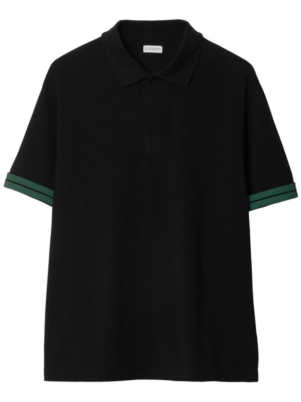 striped-cuffs polo shirt Highlights - Black/green - Cotton - Pique weave - Signature equestrian knight motif - Stripe trim - Polo collar - Front button placket - Short sleeves - Straight hem Imported Composition Cotton 100% Washing instructions Read Manufacturer Guidelines