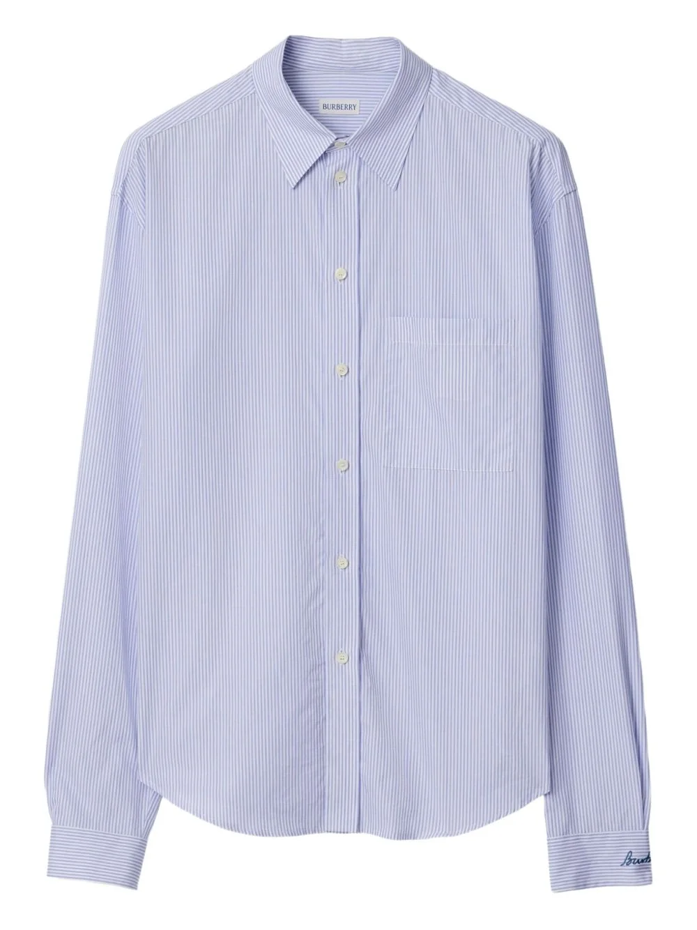 striped logo-embroidered shirt Highlights - Light blue - Striped - Button fastening - Pointed collar - Chest patch pocket - Buttoned cuffs - Curved hem - Logo embroidery Imported Composition Cotton 100%, Mother of Pearl 100%