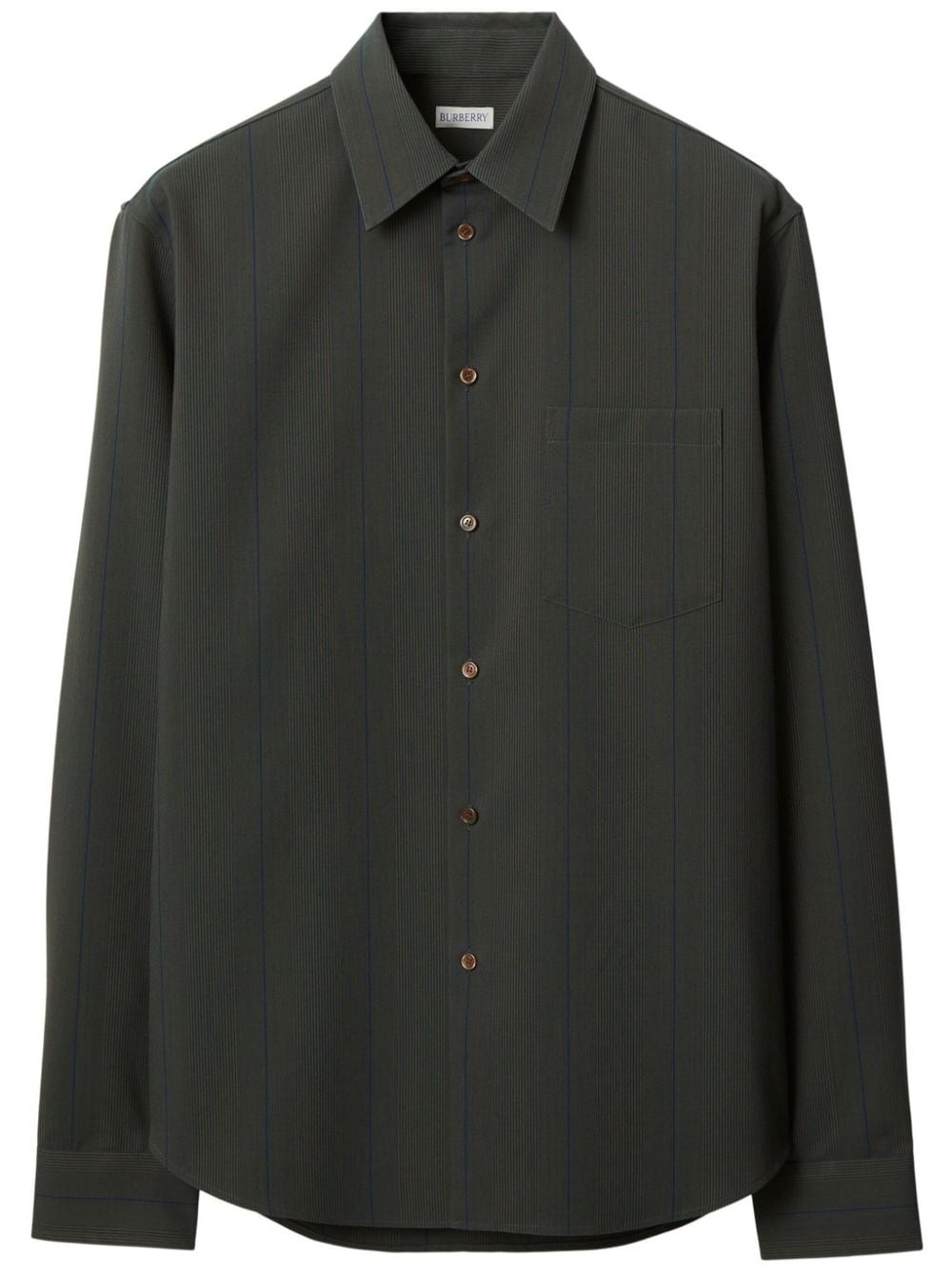 striped wool shirt Highlights - Dark grey - Wool - Vertical stripe pattern - Pointed flat collar - Front button fastening - Long sleeves - Buttoned cuffs - Chest patch pocket - Curved hem Made in Italy Composition Wool 100% Washing instructions Dry Clean Only