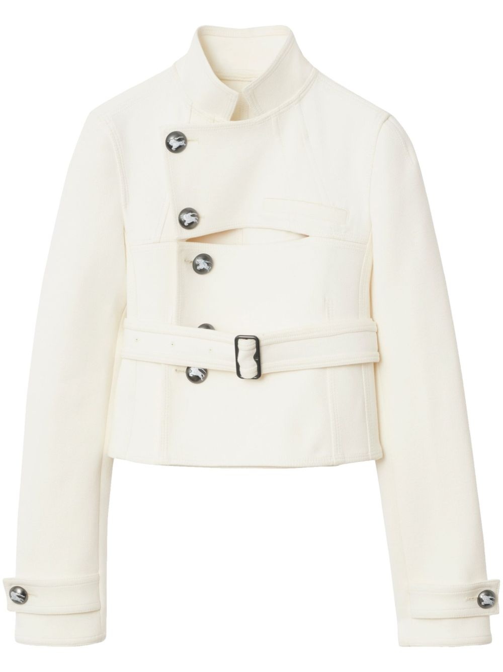 tailored jacket Highlights - White - Off-centre front button fastening - Belted waist - Buttoned cuffs - Cut-out detailing Imported Composition Acrylic 44%, Cotton 31%, Polyester 21%, Spandex/Elastane 4%