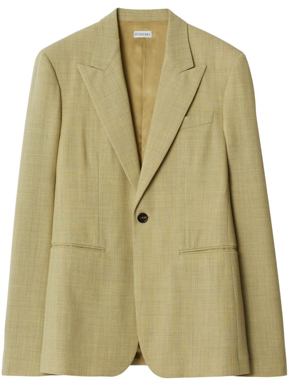 tailored wool blazer Highlights - Sage green - Wool - Tailored cut - Peak lapels - Front button fastening - Long sleeves - Buttoned cuffs - Chest welt pocket - Two front jetted pockets - Central rear vent - Straight hem - Full lining Made in Italy Composition Lining: Viscose 100% Outer: Wool 100% Washing instructions Read Manufacturer Guidelines